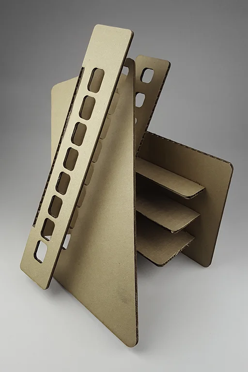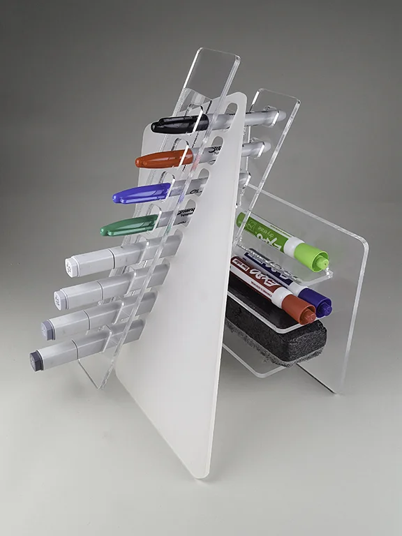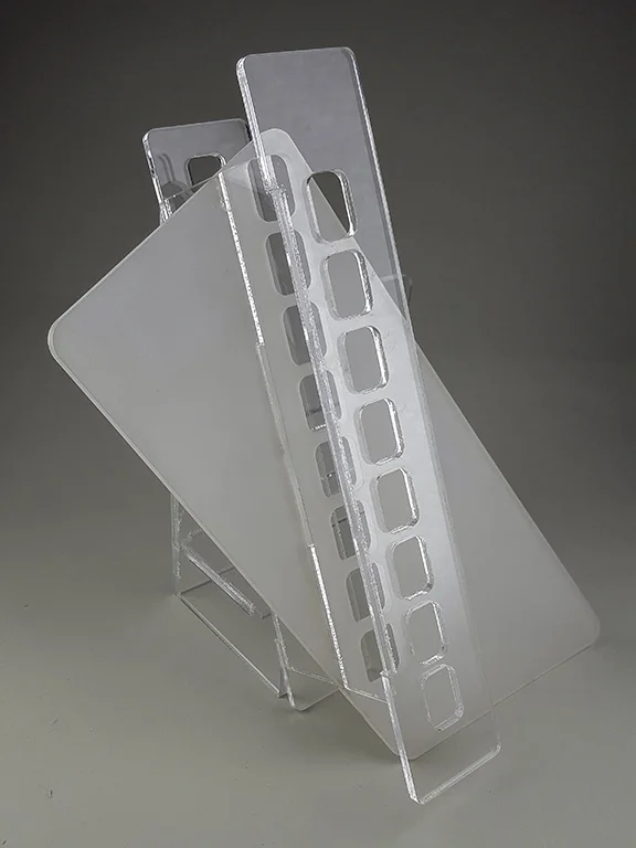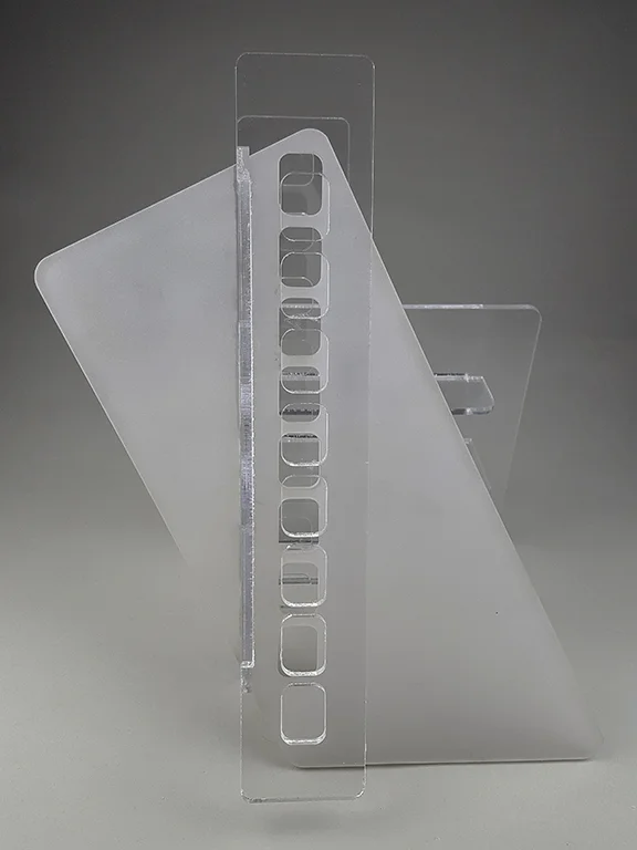 laser-cut and assembled 3/16" acrylic sheet.